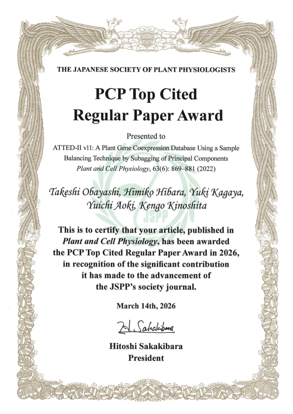 大林武教授が「2026 PCP Top Cited Regular Paper Award」を受賞しました